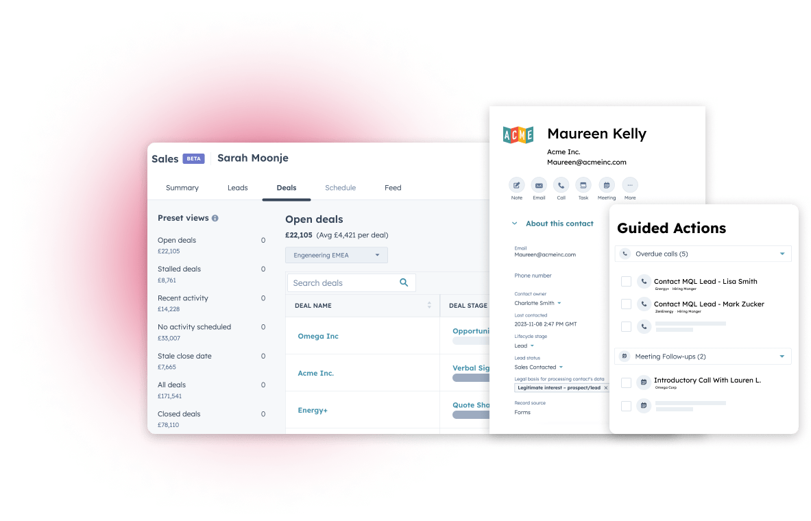 With HubSpot, you have an AI-powered operational backbone. Centralise data, research clients that are hiring, and build deeper relationships. With the right setup, you don’t just manage growth, you accelerate it.